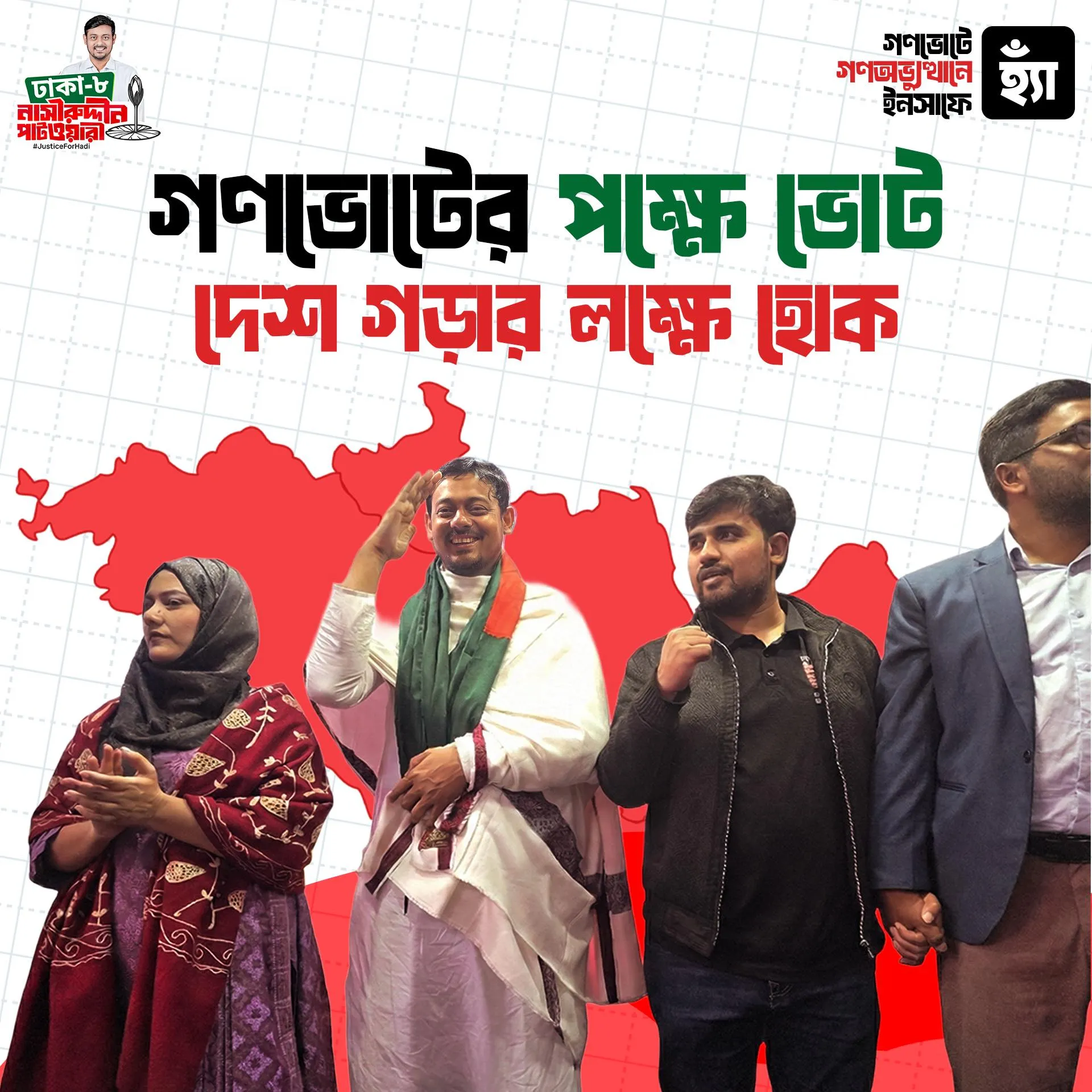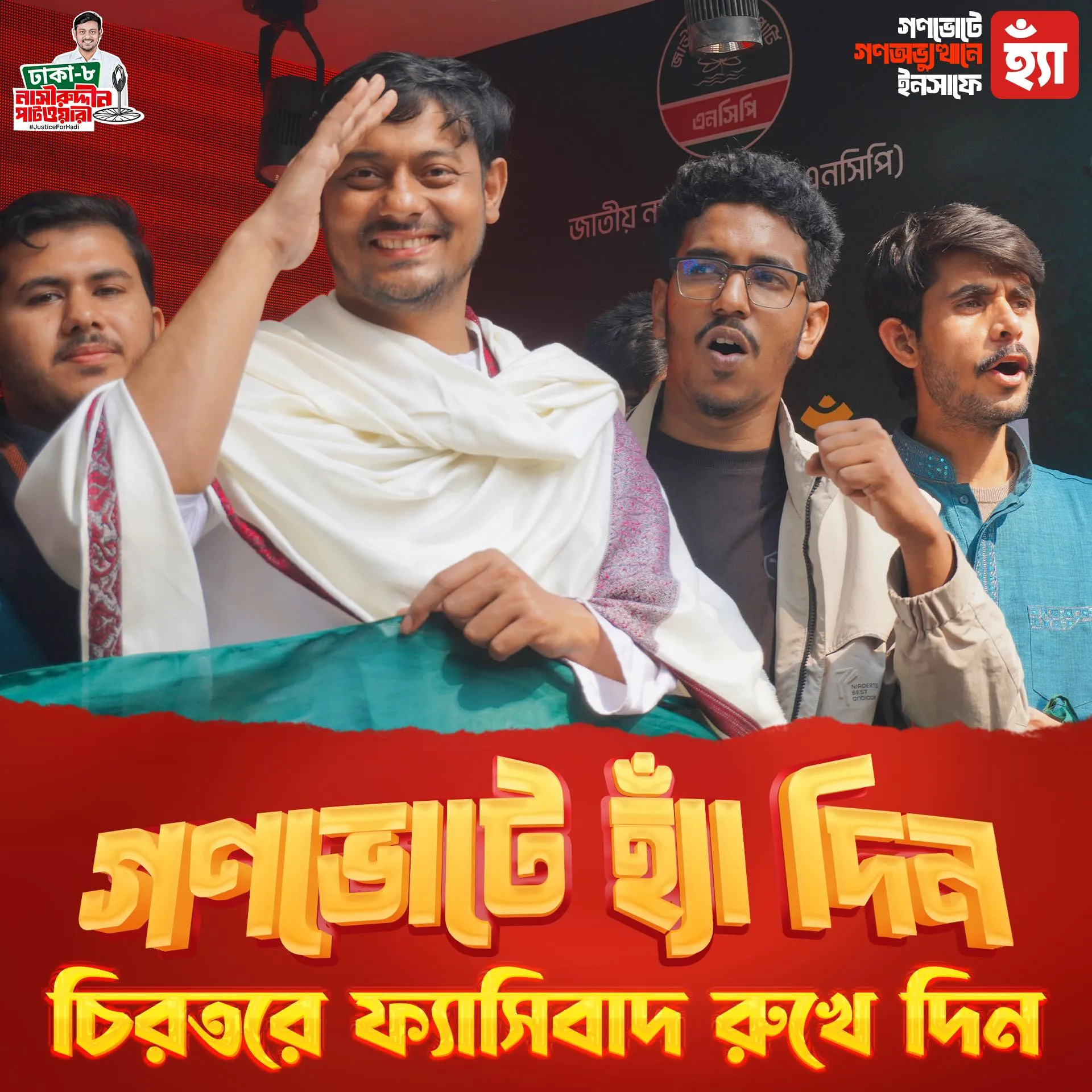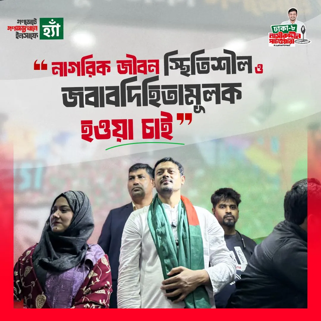 আমি নাসীরুদ্দীন পাটওয়ারী আগামী জাতীয় সংসদ নির্বাচনে ১১ দলীয় জোটের হয়ে এনসিপি এর পক্ষ থেকে ঢাকা-০৮ আসনে প্রতিদ্বন্দ্বিতা করছি।